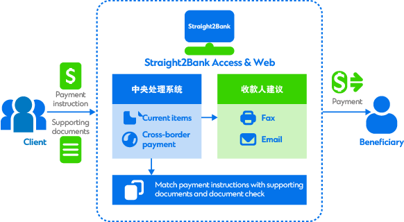 With this service, you will be able to process your overseas payments from China and submit your supporting documents electronically directly via Staight2Bank, our electronic banking platform,without the need for processing of manual documents.